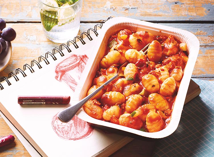 Mettez du soleil dans vos assiettes avec nos délicieux gnocchi à l'italienne* sauce tomate au chorizo (porc origine France) sans nitrite ajouté agrémenté d'un mélange de légumes (poivrons rouge et jaune, courgette, oignon rouge). Ne vous prenez plus la tête pour savoir quoi manger, optez pour notre plat cuisiné individuel à réchauffer en toute simplicité au micro-ondes !